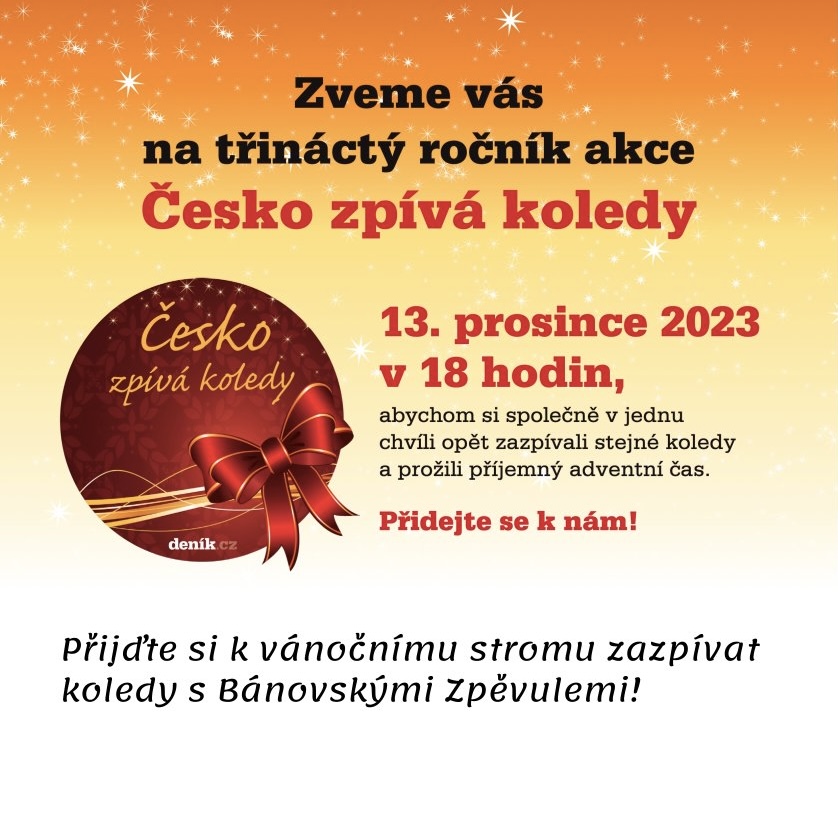 Zveme vás na 13. ročník akce ,,Česko zpívá koledy", které se koná 13. prosince 2023 v 18 hodin.