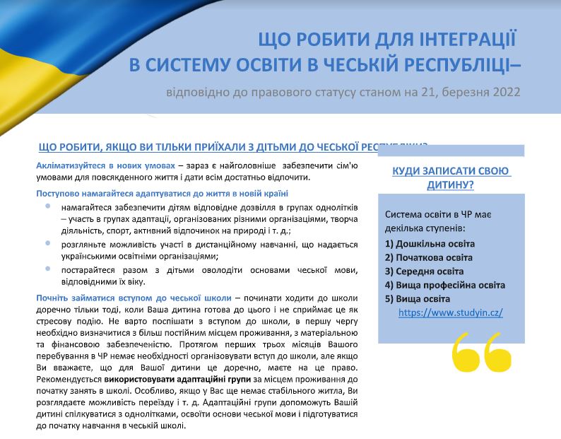 ЩО РОБИТИ ДЛЯ ІНТЕГРАЦІЇ В СИСТЕМУ ОСВІТИ В ЧЕСЬКІЙ РЕСПУБЛІЦІ
